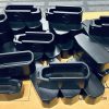 These magazines are CNC machined from Acetal, a hard engineering, lightweight plastic with high tensile strength and rigidity for use in components where exceptional strength is needed. The lips of the magazines are made from 7075 Aluminium which has excellent mechanical properties and exhibits good ductility, high strength, toughness, and great resistance to fatigue.